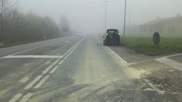 Liquame per 200 metri sulla S.R. 74 a San Michele al Tagliamento: "senso unico alternato"
