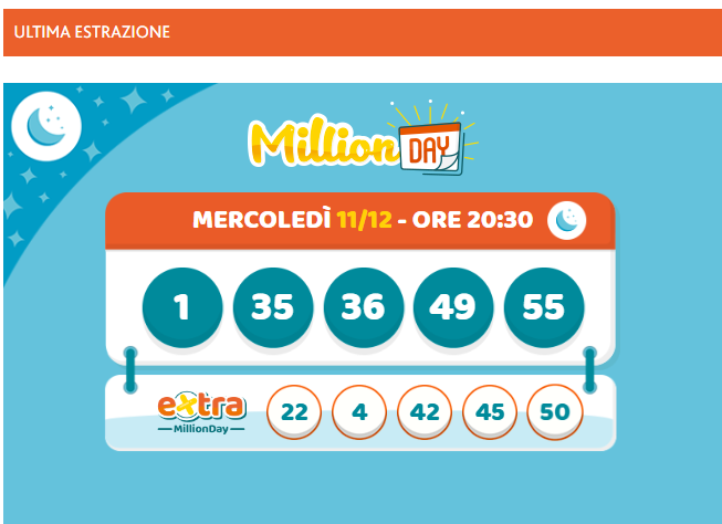 Il Million Day Extra è una nuova modalità che permette ai partecipanti di aggiungere un numero extra alla propria giocata. Questo numero viene estratto separatamente e, in caso di abbinamento con uno dei numeri scelti, il premio del Million Day viene raddoppiato. In pratica, i partecipanti possono vincere 2 milioni di euro anziché 1 milione, se hanno azzeccato anche il numero extra. Questa novità ha reso il Million Day ancora più interessante per i giocatori, aumentando le possibilità di vincita e, ovviamente, la speranza di un colpo di fortuna.