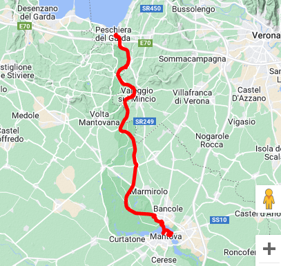 La ciclovia lungo il fiume Mincio offre un percorso pianeggiante, asfaltato e ben segnalato che inizia a Peschiera del Garda, notabile per la sua storia come fortilizio strategico fin dai tempi romani e descritta da Dante come "bello e forte arnese". Lasciando il Lago di Garda, il percorso si snoda lungo il fiume fino a Valeggio sul Mincio, un suggestivo centro turistico noto per il centro fortificato di Borghetto e i suoi antichi mulini.