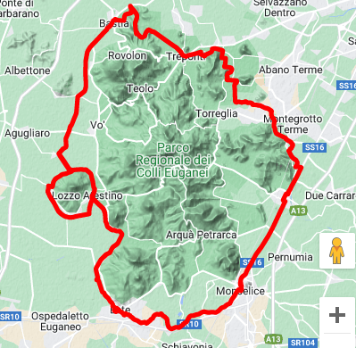 Un punto di interesse significativo è l'Abbazia di Praglia, importante centro spirituale, seguito dalle rinomate terme di Abano e Montegrotto. Il ritorno a Padova chiude l'anello, permettendo di ammirare la varietà paesaggistica dei Colli Euganei, dalle forme coniche alle morbide colline, unendo così bellezze naturali, storiche e culturali in un unico, ricco percorso ciclabile.