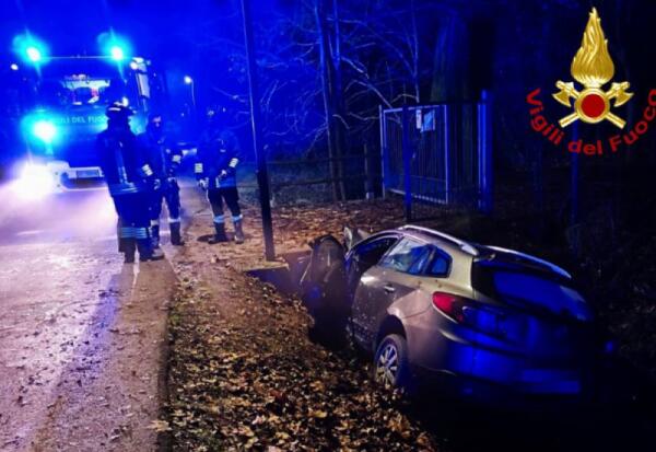 Auto fuori controllo, coppia di coniugi finisce nel fossato: la donna è incastrata tra le lamiere