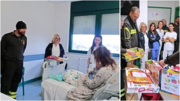Padova, la Befana arriva in Pediatria con i Vigili del Fuoco: dolci e regali per i bambini ricoverati.