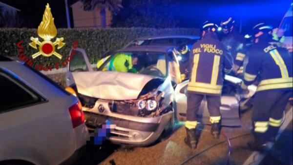Tamponamento a catena, cinque auto coinvolte: uno dei conducenti incastrato tra le lamiere