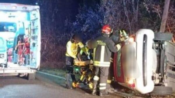 Sbanda e piomba giù da un pendio: auto ruote all'aria, conducente ferito