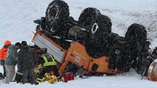 Spazzaneve si ribalta sulla ciclabile: conducente incastrato sotto il mezzo