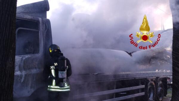 Incendio di un autocarro a Monselice all’alba: intervento dei Vigili del fuoco, cause da accertare.