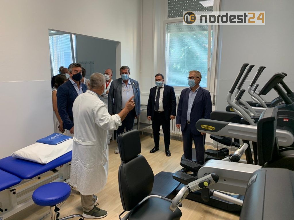 Tagliato il nastro al piano terra, il direttore generale Carlo Bramezza e il direttore della Medicina Fisica e Riabilitazione, dottor Angelo Lucangeli, hanno presentato la nuova neuroriabilitazione che amplia e qualifica ulteriormente la vocazione riabilitativa di questo ospedale.