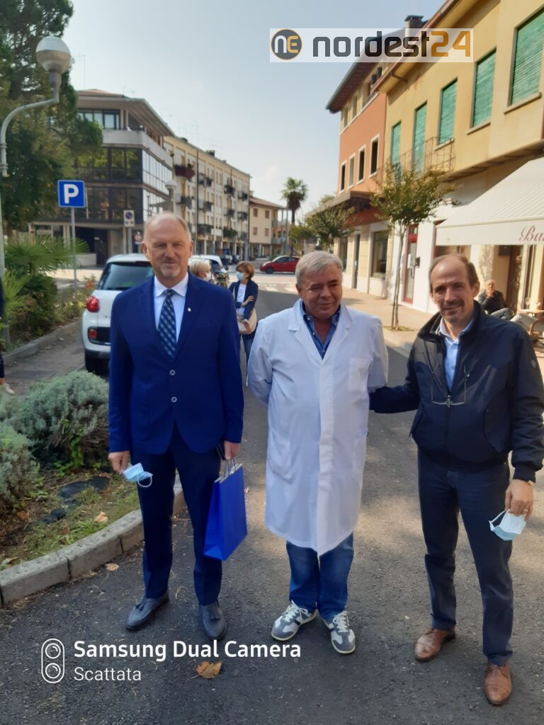 Il sindaco Pasqualino Codognotto, i consiglieri comunali Pier Mario Fantin e Robertino Driusso oltre a tanti amici e colleghi commercianti hanno voluto salutare con un rinfresco, tra qualche lacrima, Mauro Francesco Ravanello e la moglie Andrina.