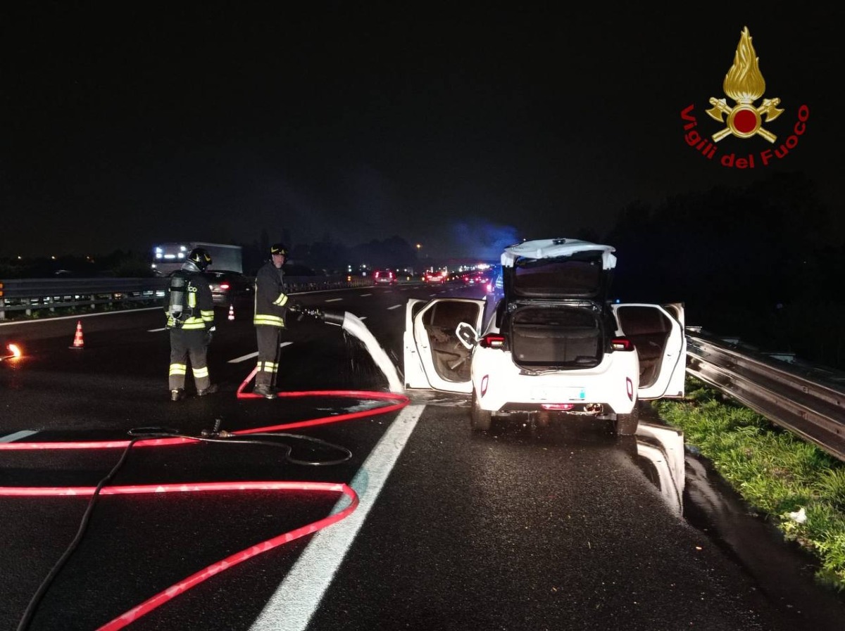 Incendio di un’auto in A4 all’altezza di Dolo. Intervento dei Vigili del Fuoco, traffico ripristinato dopo la messa in sicurezza.