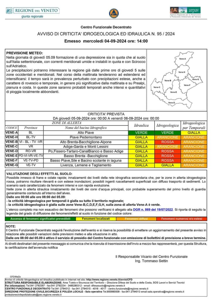 La giornata di giovedì 5 settembre si preannuncia particolarmente difficile per il Veneto. Con l'allerta meteo rossa e arancione in vigore, è importante seguire le indicazioni delle autorità e rimanere informati sugli sviluppi della situazione per garantire la propria sicurezza e quella degli altri.