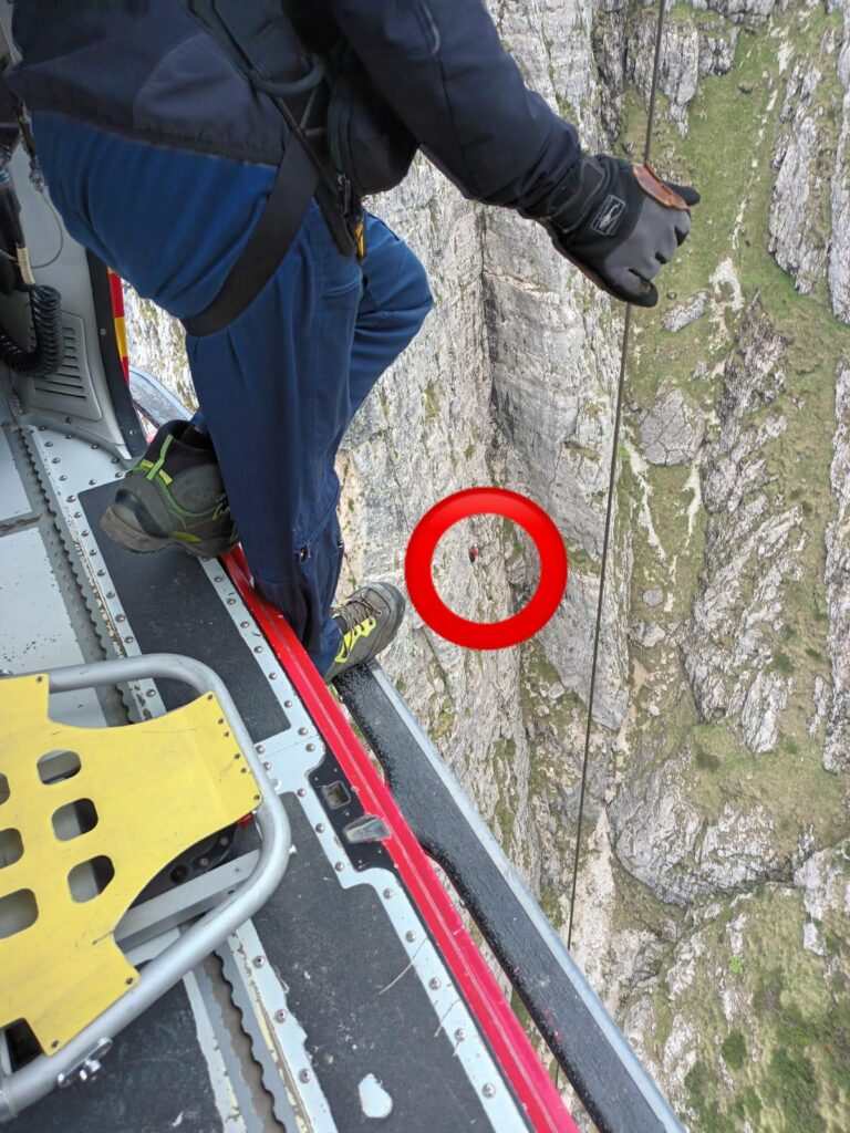 Giunti sopra la verticale, il tecnico di elisoccorso è stato calato con il verricello, garantendo un intervento rapido e preciso.