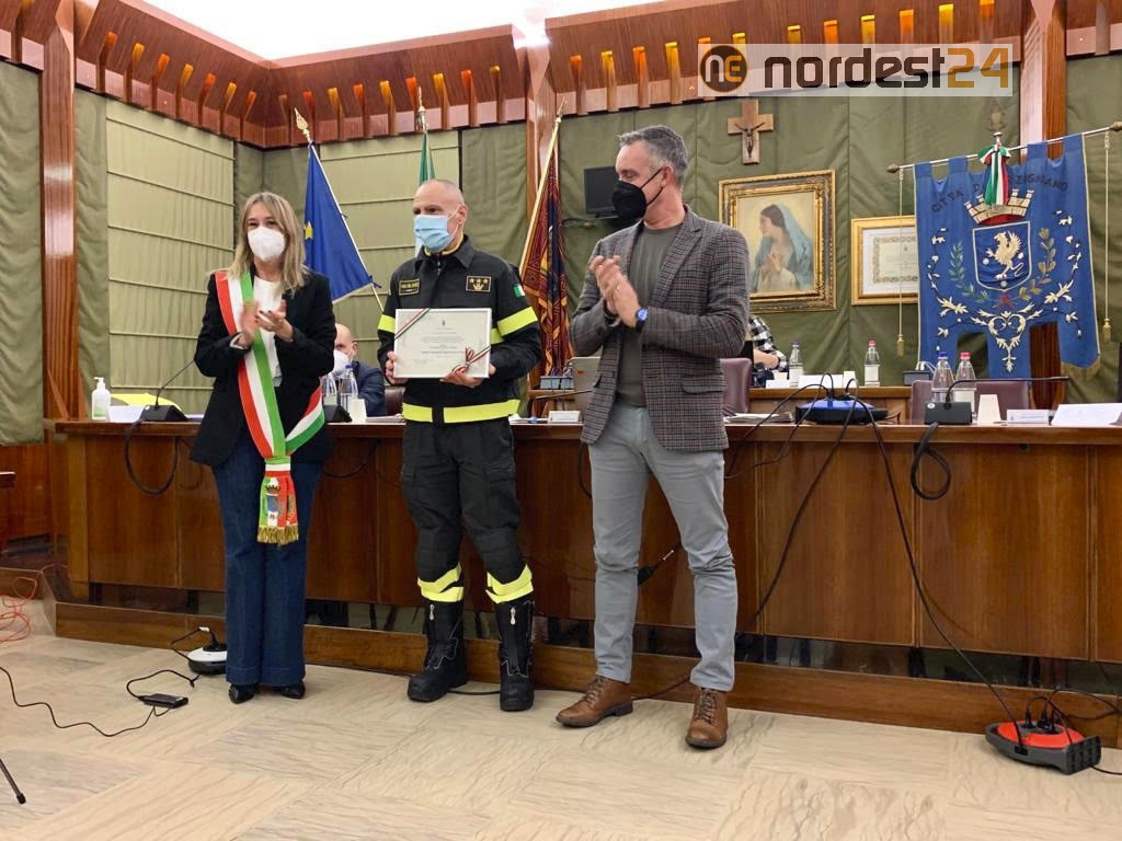 La cittadinanza onoraria è stata consegnata al comandante dei vigili del fuoco Giuseppe Costa dal sindaco Alessia Bevilacqua durante la seduta del consiglio comunale di martedì 29 dicembre.