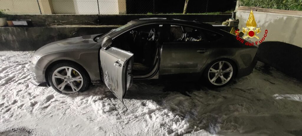 I pompieri arrivati dal locale distaccamento, hanno spento con la schiuma le fiamme di un’Audi coupé, andata irrimediabilmente distrutta, che era parcheggiata in un’area privata del condominio.