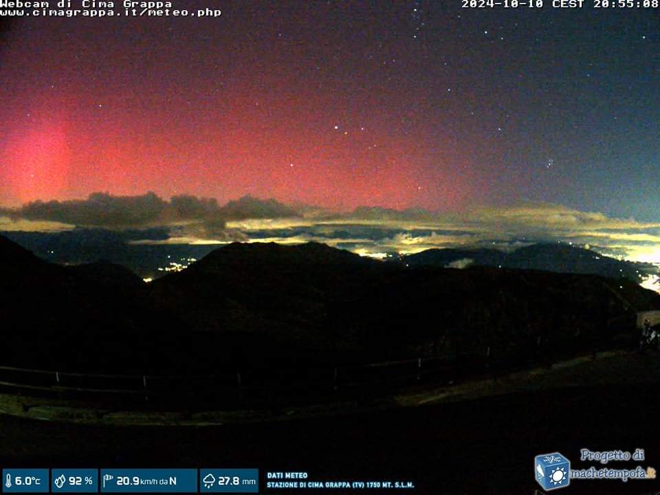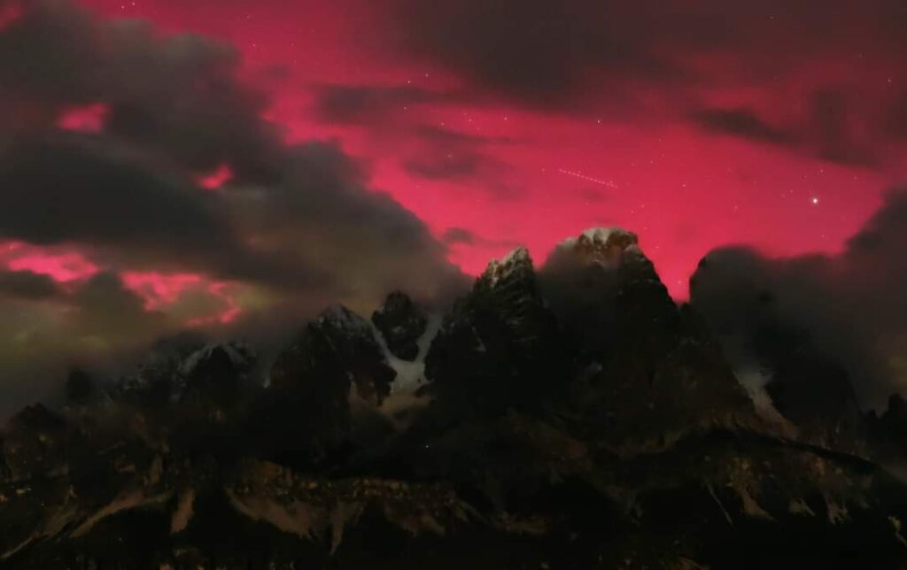 L'AURORA BOREALE ha regalato uno spettacolo incantevole ai cittadini delle zone settentrionali del nostro Paese. Questa sera, i cieli di città a Nord-Nordest, in particolare il Veneto, sono stati dipinti da sfumature di rosso e violaceo, un effetto visivo straordinario generato dalla recente tempesta geomagnetica di Classe G4. Numerose le segnalazioni giunte da diverse località, con particolare intensità in Veneto, Piemonte e Lombardia.