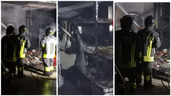 Fiamme in un garage deposito: bruciato un furgone