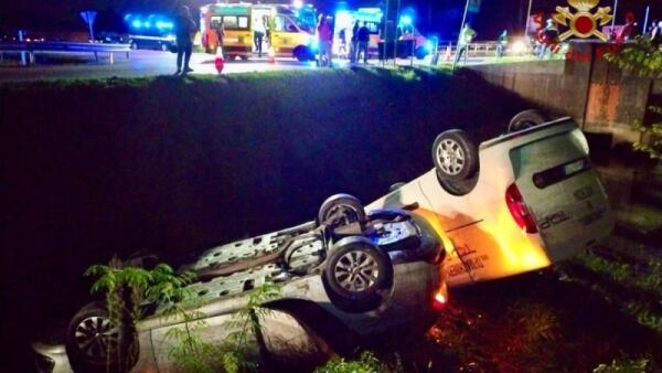 Incidente a San Donà di Piave, due auto si scontrano e finiscono nel canale: 2 feriti gravi