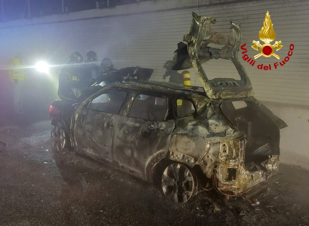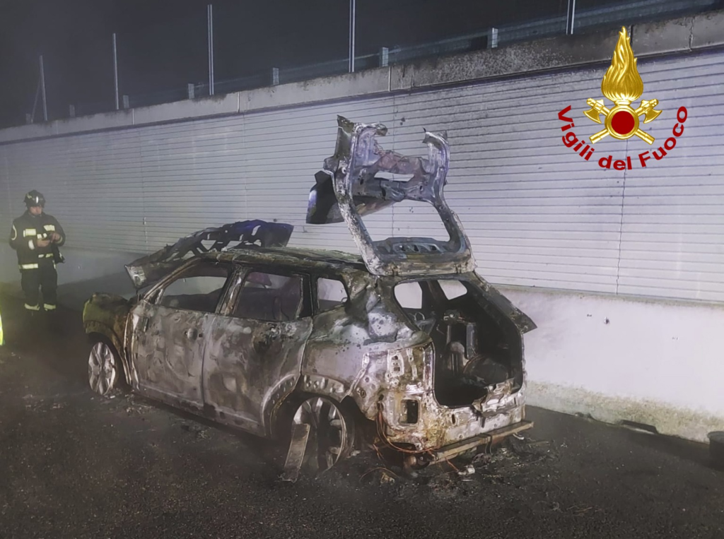 Auto ibrida distrutta dalle fiamme in autostrada: la vettura aveva solo due mesi di vita