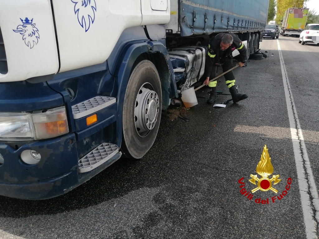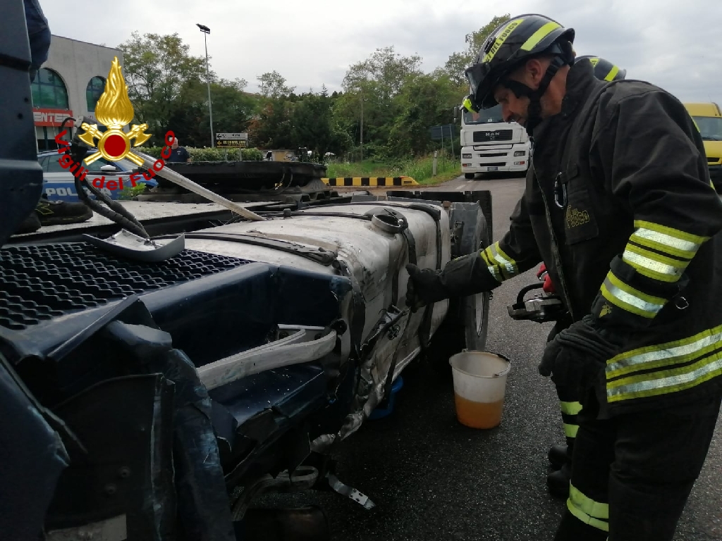 L'incidente ha visto coinvolti un autovettura che, dopo aver perso il controllo ha invaso la corsia opposta e si è scontrata con un mezzo pesante, illesi i due conducenti. I vigili del fuoco, giunti da Verona con 1 mezzo e 5 uomini, hanno operato per mettere in sicurezza i due mezzi e contenere lo sversamento di carburante che fuoriusciva dal serbatoio dell'autoarticolato rottosi a causa dello scontro.