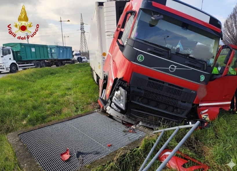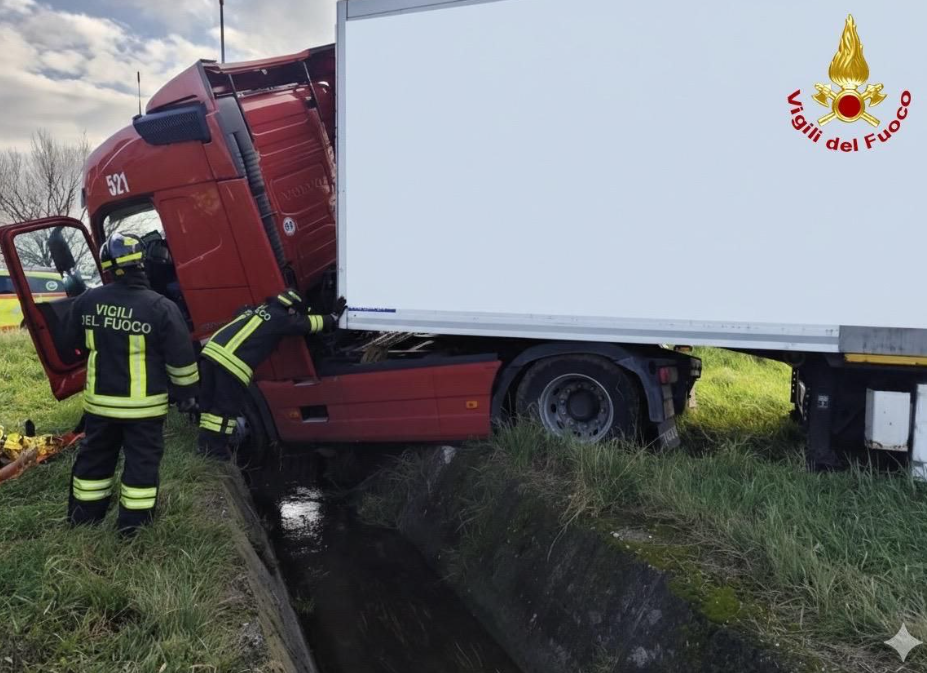 VERONA - Poco dopo le 15 di oggi, un autoarticolato è uscito di strada lungo la SR38 "Strada Porcilana" a Verona, terminando la corsa all’interno di un canale irriguo artificiale. Le cause dell’incidente sono ancora in fase di accertamento. Fortunatamente nessun altro veicolo è rimasto coinvolto.
