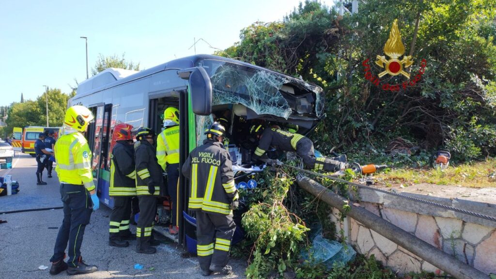 L'autobus invade la corsia opposta e piomba contro un muro: morta una 49enne, 6 feriti