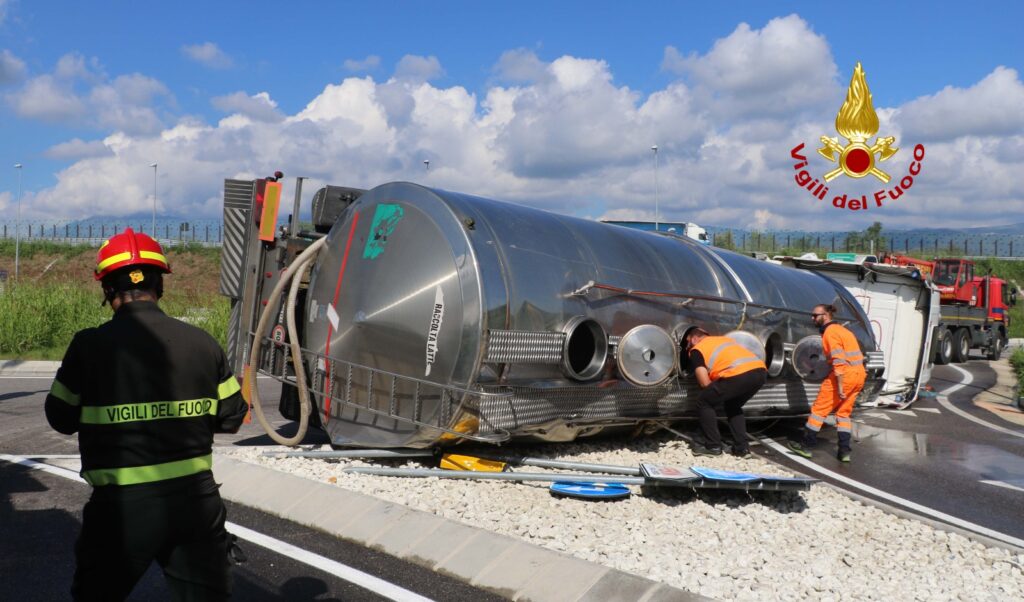 Il carico del latte è stato travasato su un altro camion cisterna fatto arrivare sul posto. Sul posto la polizia stradale per deviare il traffico e i tecnici di sicurezza ambiente per lo sversamento di parte del gasolio dal serbatoio.