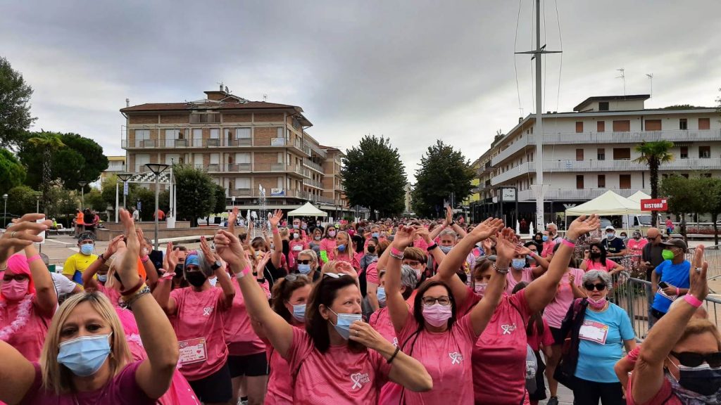 Dopo la partenza da Piazza Fontana, il lungo fiume rosa, composto anche da una minoranza di uomini, si è suddiviso tra i due percorsi, di 5 e 9 chilometri, che hanno attraversato il cuore di Bibione, percorrendo per un lungo tratto anche la pista ciclabile che delimita la spiaggia.