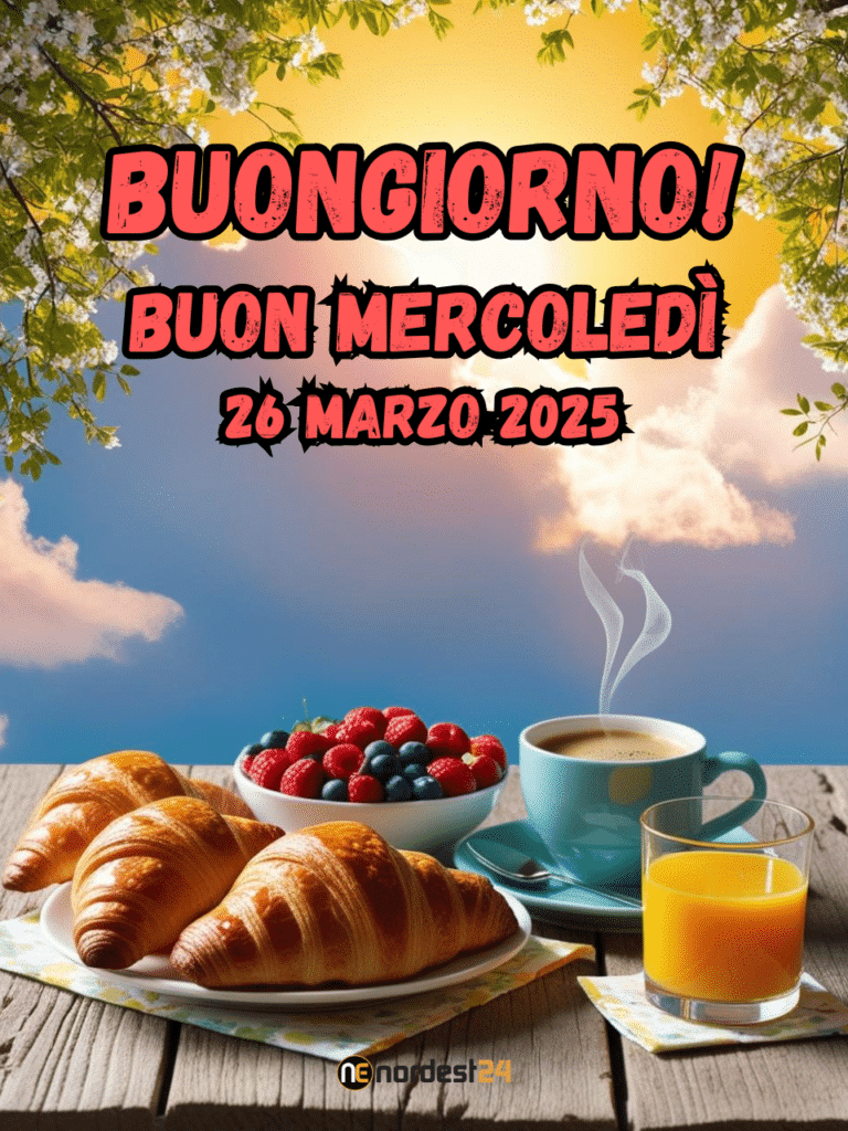 Mercoledì 26 marzo 2025. Una nuova giornata si apre con le sue opportunità, un altro passo verso il fine settimana. Mentre l'inizio della settimana porta con sé una serie di impegni e sfide, il mercoledì rappresenta una sorta di punto di mezzo, un'occasione per fare il bilancio di ciò che è stato fatto e impostare il ritmo per i giorni a venire. Perché non iniziare la giornata con un pensiero positivo? Ogni mattina, infatti, offre una nuova possibilità di riflessione e crescita, ed è proprio con questo spirito che affrontiamo il mercoledì, una giornata che si tinge di energia, motivazione e voglia di fare.