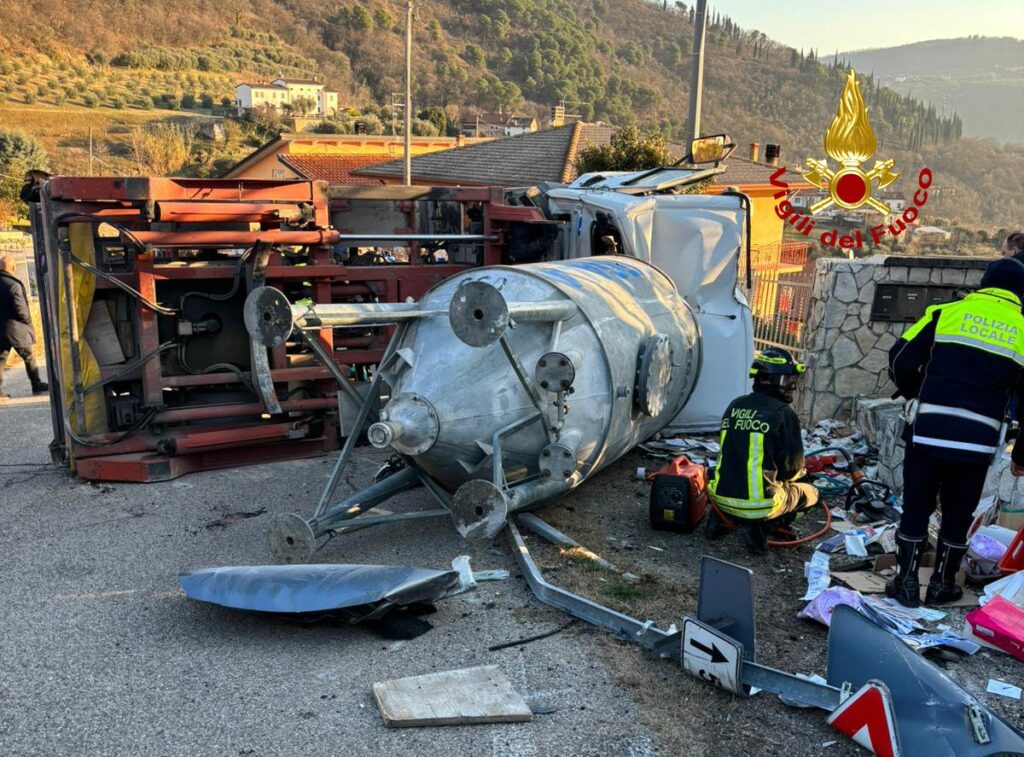 GRANCONA (VICENZA). Poco dopo le 8:30 di giovedì, i vigili del fuoco sono intervenuti in via Zuccante a Grancona (VI) per un autocarro, che trasportava un silos per le malte, finito rovesciato contro...