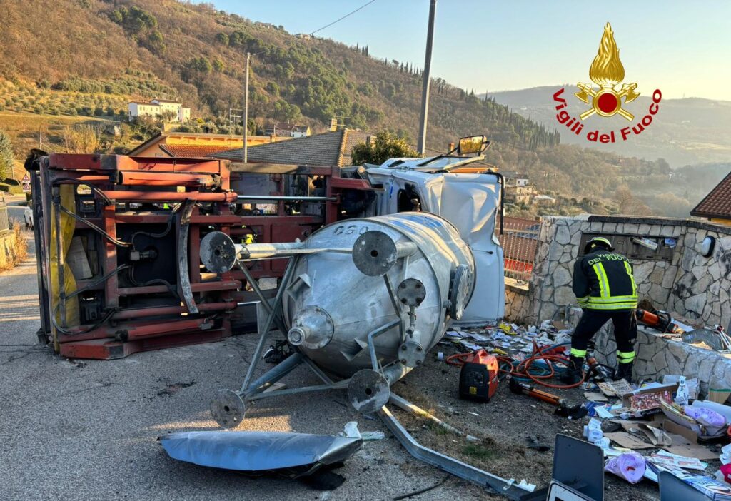 GRANCONA (VICENZA). Poco dopo le 8:30 di giovedì, i vigili del fuoco sono intervenuti in via Zuccante a Grancona (VI) per un autocarro, che trasportava un silos per le malte, finito rovesciato contro un’auto parcheggiata a ridosso di un muro di un’abitazione: ferito il conducente.