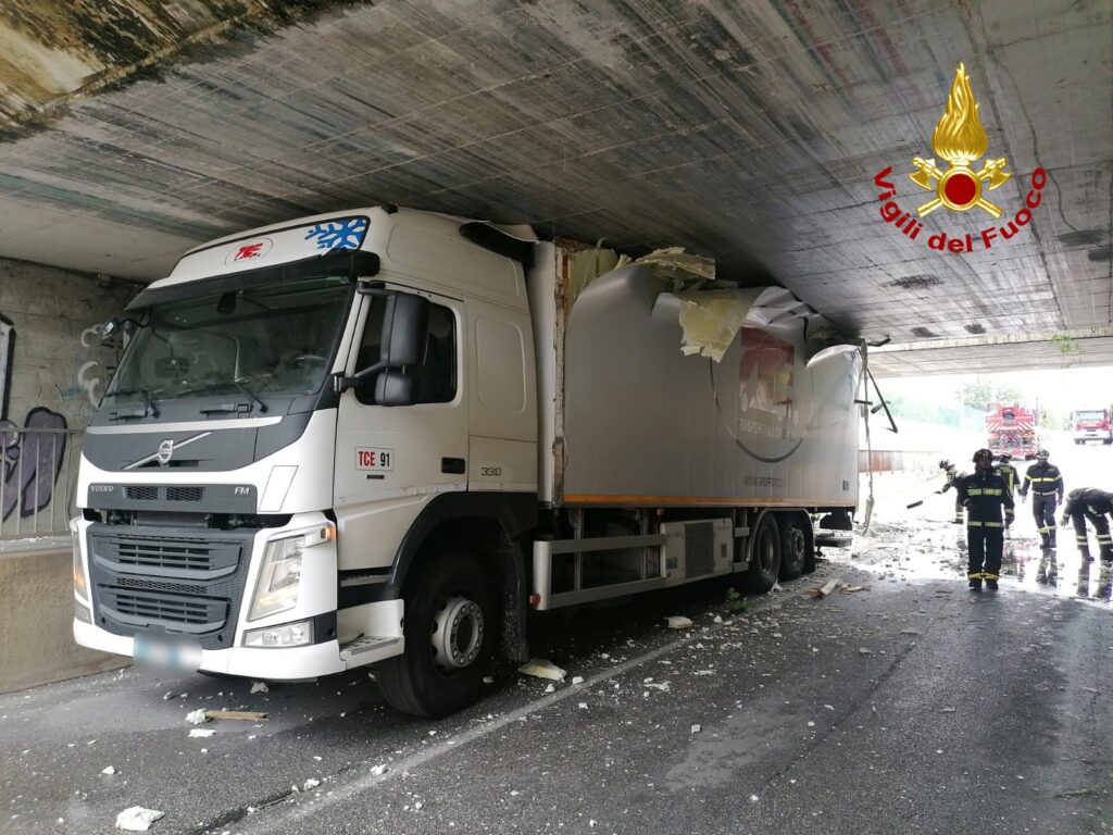L'autista sbaglia le misure, il camion frigo si incastra nel sottopasso ferroviario