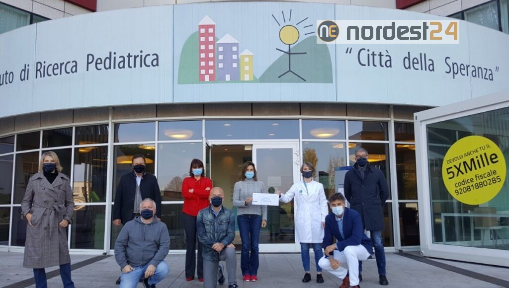 Venticinquemila euro a ulteriore sostegno della ricerca su una rara malattia congenita infantile: l’ernia diaframmatica. L’assegno è stato consegnato stamani dal team di “Camminare per la Vita” a Fondazione Città della Speranza, presso l’Istituto di Ricerca Pediatrica (IRP) a Padova. Presenti gli organizzatori della manifestazione che, da quattro anni consecutivi, ogni settembre anima il cuore di Treviso nel segno della solidarietà: la plurimedagliata campionessa di sci Deborah Compagnoni, Paolo Ruggiu, Rossana Bollero, Stefano Camarotto, Claudio Lucadamo, Giuseppe Russo, Marco Vatteroni e Antonella Gasparotto, volontaria e consigliera di Città della Speranza. In rappresentanza di quest’ultima anche il fondatore Franco Masello, la direttrice scientifica di IRP Antonella Viola e la ricercatrice responsabile del progetto di ricerca sull’ernia diaframmatica congenita, la dottoressa Martina Piccoli.
