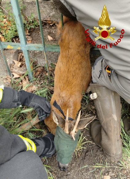 Il capriolo, probabilmente spaventato o in fuga, ha tentato di passare tra le strette sbarre di un’inferriata privata, senza riuscirci. Nell’impresa si è bloccato a metà, provocandosi lesioni e restando completamente immobilizzato. La scena è stata notata da alcuni residenti che hanno subito allertato le autorità competenti.