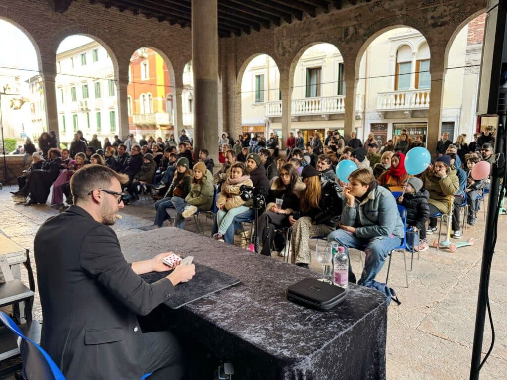 A Treviso, sabato 1 e domenica 2 marzo, l’ultimo weekend di Carnevale è stato caratterizzato da una lunga serie di eventi per famiglie, con un occhio di riguardo per i più piccoli. L’estro e la fantasia di artisti di strada, trampolieri e danzatori, complice il fine settimana di bel tempo, hanno trasformato la città in un palcoscenico a cielo aperto, all’insegna del divertimento e della fantasia. Tra i grandi protagonisti di questa edizione del Carnevale Trevigiano, Jack Nobile, prestigiatore e youtuber professionista (il suo canale conta più di 1,5 milioni di iscritti e oltre mezzo miliardo di visualizzazioni totali) che da 12 anni si esibisce con spettacoli di magia dal vivo in tutto al mondo e insegna la sua arte attraverso il web (nel 2019 ha vinto il premio Moige per il canale YouTube più educativo d’Italia). I suoi spettacoli, alla Loggia dei Cavalieri, sono stati molto apprezzati e hanno raccolto un gran pubblico, soprattutto costituito da giovani. Per i più piccoli, invece, spettacoli itineranti con la compagnia teatrale Barbamoccolo e un set di trenta giochi in legno “di una volta” in Piazzetta Aldo Moro e in Piazza Rinaldi, dove nella mattinata di oggi si è anche svolta la votazione per il nome della mascotte ufficiale di “Treviso Green Leaf – Città Verde d’Europa 2025”. La volpe cercava un nome e la scelta dei bambini è stata per TREVY.