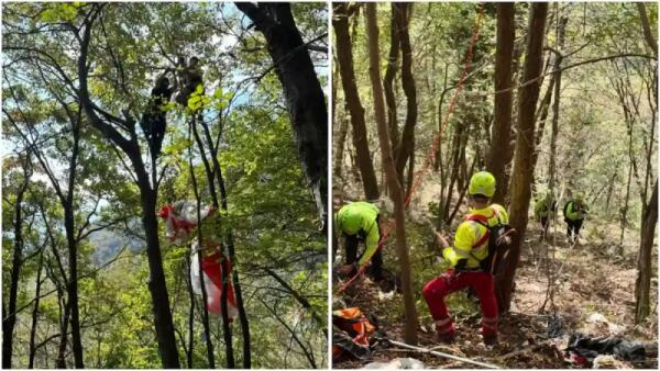 Paura durante il parapendio: pilota precipita e rimane sospeso tra gli alberi | FOTO