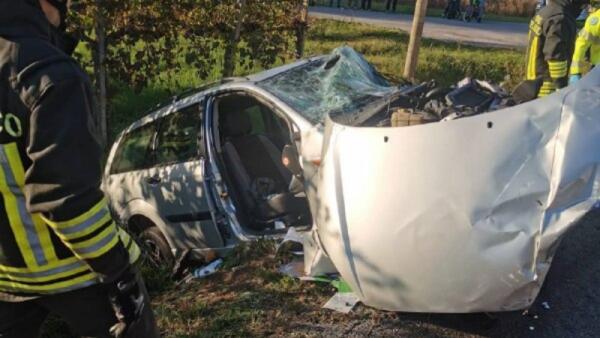 Violento scontro auto-camion: i passeggeri dell'auto imprigionati tra le lamiere deformate