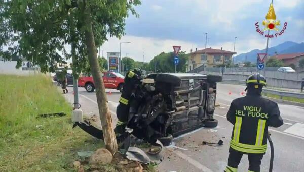 Violento scontro tra un'auto e una bici, il veicolo si ribalta dopo l'impatto: due persone ferite