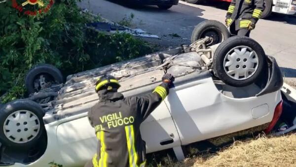 Finisce con l'auto rovesciata nel fosso: ferita una donna