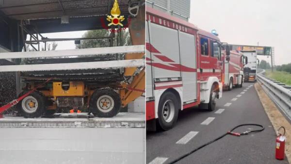Rimorchio in fiamme sull'A28: rogo circoscritto prima che raggiungesse la cabina del camion