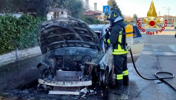 A fuoco un'auto parcheggiata: Mercedes divorata dalle fiamme