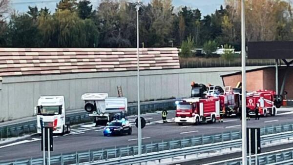 Esce fumo dal rimorchio, l'autista chiama i soccorsi: trasporta un carico di batterie esauste