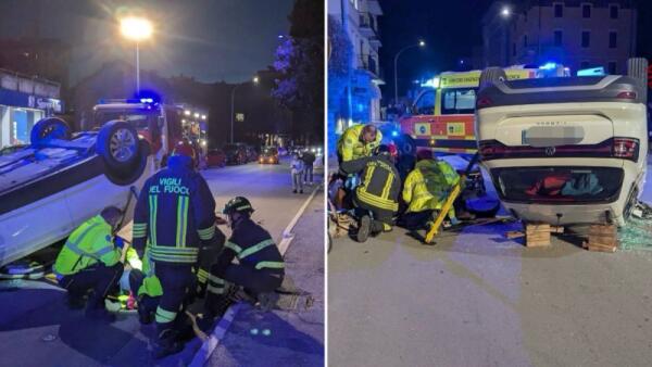 Piomba contro un'auto parcheggiata a bordo strada e si ribalta: grave una donna