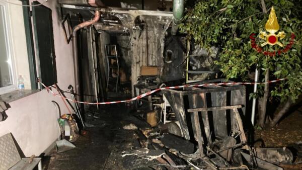 Va a fuoco un ricovero attrezzi, paura per l'abitazione adiacente: 3 ore di intervento dei pompieri
