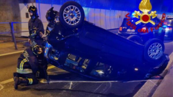 Auto sfonda la recinzione e finisce ribaltata in un giardino: conducente intrappolato | VIDEO