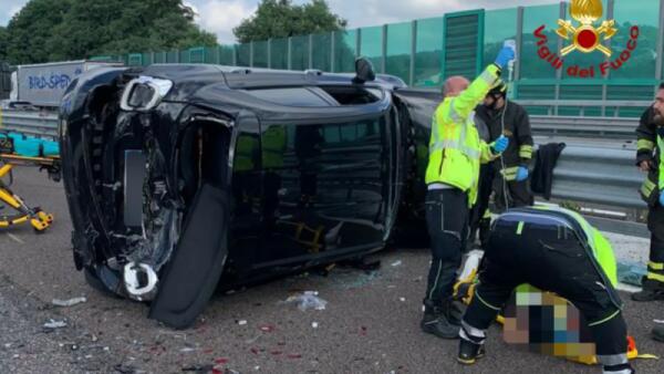 Tamponamento tra 2 mezzi in A4, poi scoppia l'incendio: ferita una giovane donna