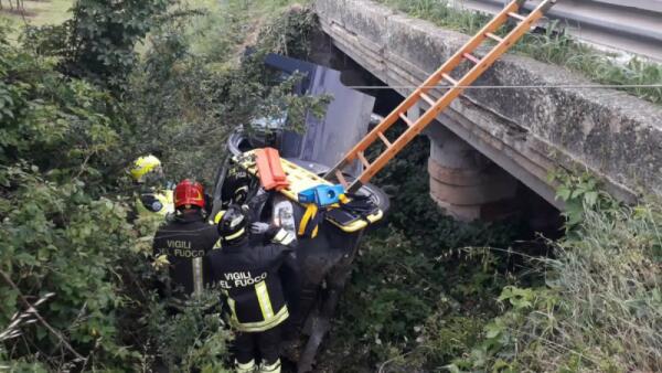 Furgone di un corriere vola giù dal ponticello: grave il conducente