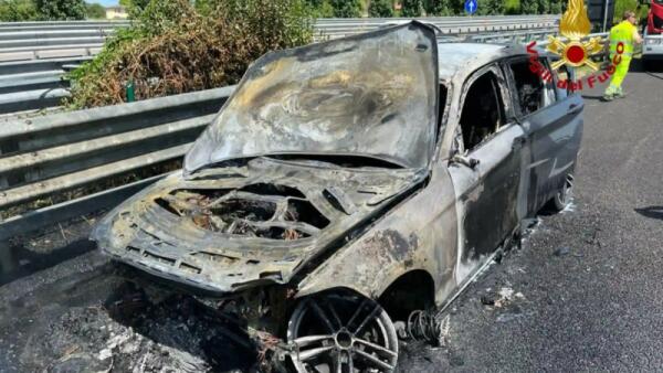Paura in A4, Bmw avvolta dalle fiamme: distrutta