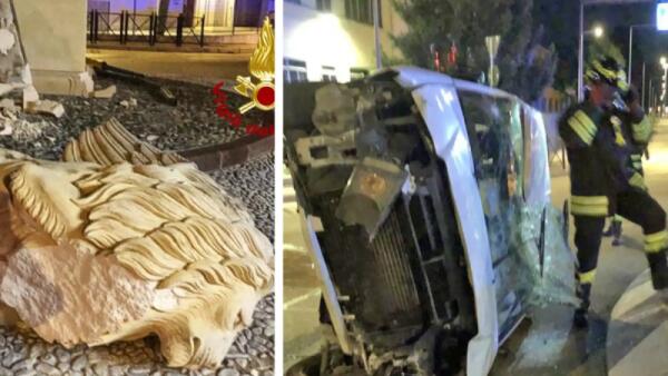 Dritto alla rotonda, il furgone centra il Leone di San Marco e lo distrugge