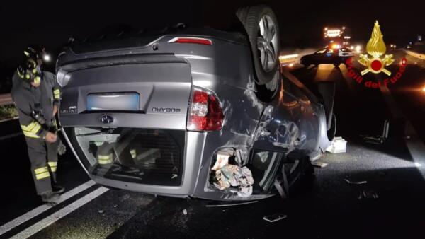Furgone si ribalta e s'incendia in autostrada: due feriti