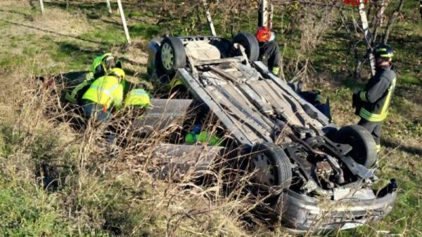 Auto sbanda e finisce ribaltata in un campo agricolo: un ferito