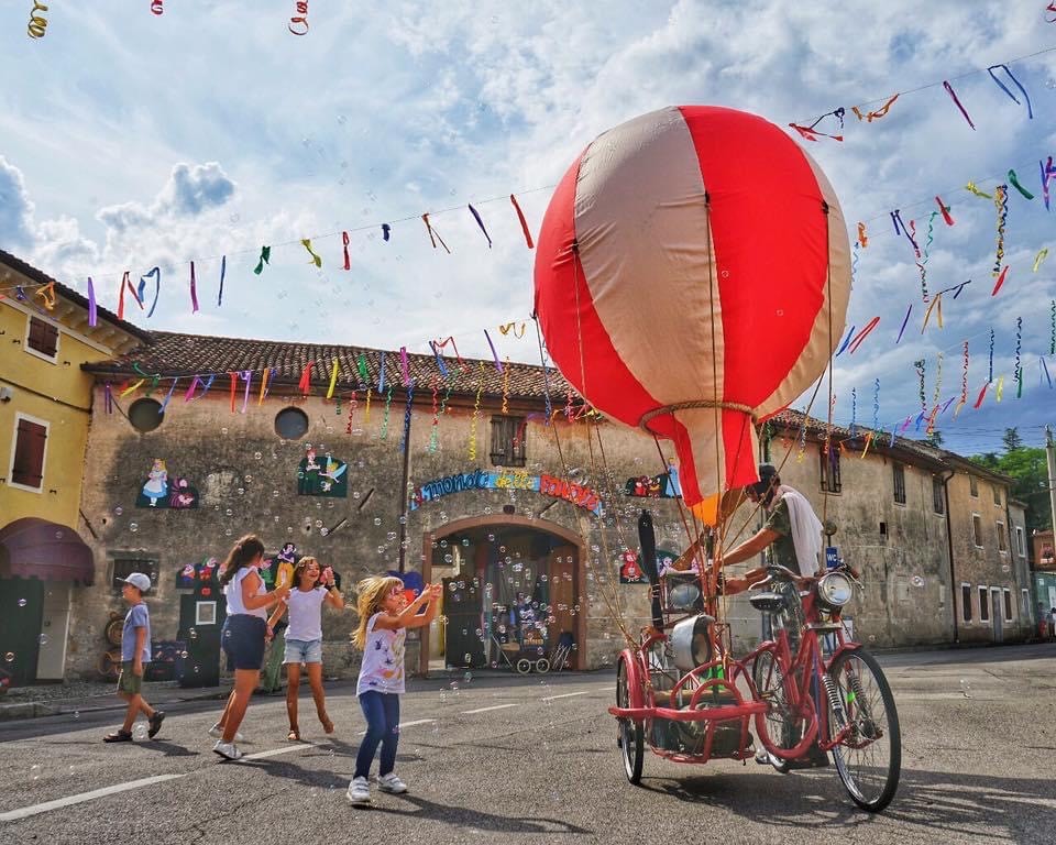 Ricco il programma di domenica 8 settembre. Il pomeriggio sarà scandito dagli spettacoli di marionette di “Teatro a dondolo”, dai burattini di Valerio Saccà, dalle marionette di Francesca Zoccarato, dai burattini del “Teatro del corvo”, dal clown francese “Pass pass”, dai giocolieri su monociclo “Quattro elementi”. E poi ancora le marionette e i burattini di Zanubrio, il fantasista “Otto Bassotto”, i burattini itineranti su risciò di “Bambabambin”, il laboratorio del legno con l’associazione Fantulin, truccabimbi, ludobus con “La tana dei tarli”. Ignazio Bortot porterà a Mescolino il suo piccolo teatrino e presenterà uno spettacolo di quattro minuti che sarà replicato più volte nel corso del pomeriggio. «Domenica – annuncia De Bastiani – gli artisti omaggeranno anche il centenario della prima vittoria di un italiano, il sanmartinese Ottavio Bottecchia, al Tour de France con spettacoli caratterizzati dalla presenza di biciclette e con una parata per il borgo con le loro bici artistiche, in memoria proprio del campione della due ruote».